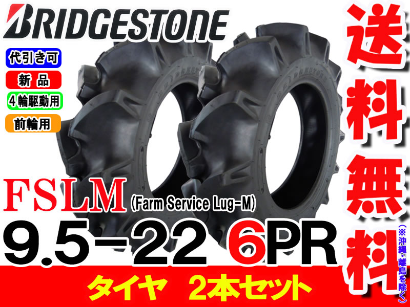 FSLM 9.5-22 6PRタイヤ2本セットトラクター前輪用タイヤ/ブリヂストン【Farm Service Lug-M】