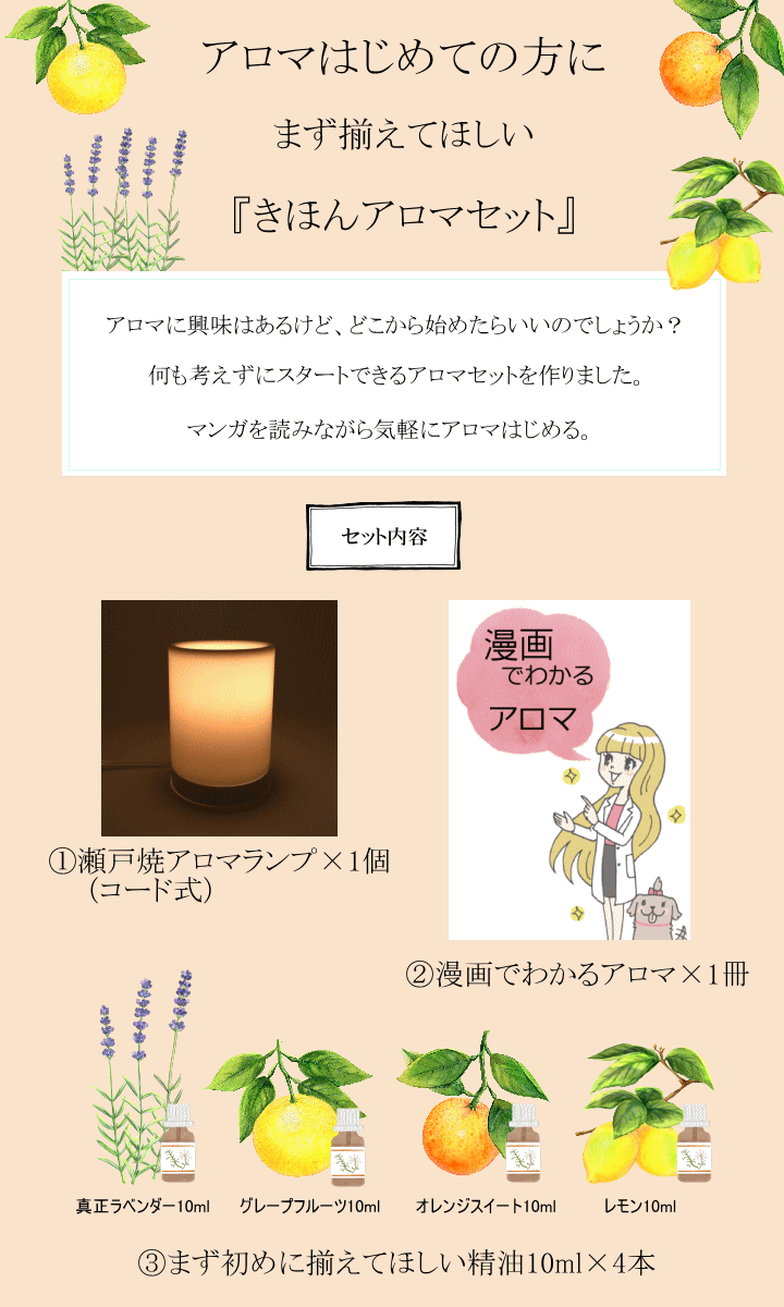 スッキリとした香りで芳香浴 ローズマリー2滴、レモン3滴、ペパーミント1滴仕事や勉強の際におすすめのブレンドです。アロマポットやアロマランプで、お部屋に香りをひろげます。スッキリとしたクリアな香りが、頭をシャキッとさせてくれます。眠気を覚ましたいときにも効果的です。