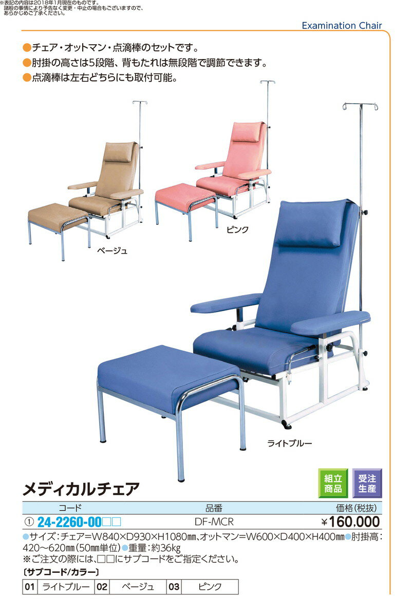 メディカルチェア リラックス DF-MCR品番 24-2260-00031入り 医療機器対象外 診察・処置 点滴処置 定価\160000 JAN 4571485740300 ●定価¥160,000円(税別)●商品説明●チェア・オットマン・点滴棒のセットです。